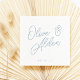 A beautiful typography based wedding napkin design featuring your names in oversized dusty blue script lettering with your wedding date beneath in classic serif lettering.
