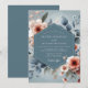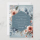 Evoke a sense of romantic elegance with this painterly floral design. A soft watercolor wash of dusty slate blue is beautifully accented by delicate peach and blush anemones. The muted, artistic foliage creates a dreamy and ethereal aesthetic for your sophisticated union.