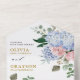 Dusty Blue Pastel Pink hydrangeas Wedding QR Code All In One Invitation