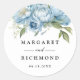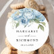 Dusty Blue Peony Elegant Watercolor Wedding Classic Round Sticker