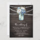 Dusty Blue Peony Mason Jar QR Code Wood Wedding Invitation
