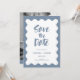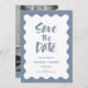 Modern Elegance: Dusty Blue Photo Script Save The Date Invitations with Wavy Frame Design. Immerse your loved ones in the joy of upcoming nuptials with our Modern Elegant save-the-date invitations. These beautifully crafted templates feature an understated dusty blue and white colour palette, infusing sophistication into every detail. A captivating script font adorns the front, announcing the event details, encapsulated by a delicate wavy frame. For an added touch of personalisation, the back of the invitation has a template for a black and white photo of the couple. Whether you like to buy prints or prefer time-saving digital downloads, the choice is yours. Our invitations are simple to customise, ensuring each detail perfectly aligns with your wedding theme. Embrace modern elegance and give your guests a taste of the beautiful celebration to come with these uniquely designed wedding save the date invitations.
