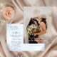 This elegant wedding thank you design pairs a romantic full-photo layout with soft dusty blue botanical details on the reverse side. Delicate French-inspired scrollwork and a graceful blue palette create a timeless look that feels refined, heartfelt, and polished after your celebration. The coordinating postcard format is perfect for sharing a personal note of appreciation with family and friends while keeping your stationery suite beautifully cohesive. A lovely choice for classic, formal, and romantic weddings with a soft blue aesthetic.