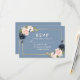 Dusty Blue Pink Blush Floral Gold Wedding RSVP Card