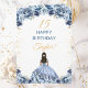 This elegant and glamourous birthday card can be personalised with a name or title such as daughter, granddaughter, niece, friend etc. The design features a beautiful princess with dark hair in a dusty blue ball gown. The text combines handwritten script and modern sans serif fonts for a classy and sophisticated look. The floral arrangements and gold confetti create the perfect blend of rustic and chic.
