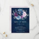 Elegant dusty blue Purple lilac lavender floral theme wedding save the date card featuring elegant bouquet of dusty blue, Navy, purple, lilac colour rose flowers buds and sage green eucalyptus leaves. Please contact me for any help in customisation or if you need any other product with this design.