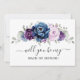 Elegant dusty blue Purple lilac lavender floral theme will you be my maid of honour invitation featuring elegant bouquet of dusty blue, Navy, purple, lilac colour rose flowers buds and sage green eucalyptus leaves. Please contact me for any help in customisation or if you need any other product with this design.