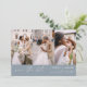 QR Code Modern and Elegant Landscape Horizontal Three (3) Photo Save the Date Wedding Magnet with hand lettered script typography. The save the date invitation magnet includes script typography and chic and simple design that you can add your customised engagement photograph picture to.