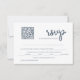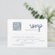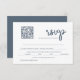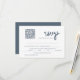 Make responding easy and stylish with the Dusty Blue QR Code Wedding RSVP Card. The front features a crisp white background with elegant dusty blue lettering, offering guests the option to respond via QR code or traditional mail, along with space for menu selections. The back showcases a dusty blue background with the bride and groom’s initials and wedding date in sleek white text for a personalised and polished touch. Perfect for modern, elegant, or romantic weddings, this RSVP card blends convenience with timeless design.