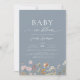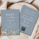 Dusty Blue QR Code Wildflower Baby in Bloom Invitation
