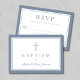 Dusty Blue Religious Cross Boy Baptism RSVP Card