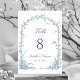 Dusty Blue Romantic Botanical Arch Garden Wedding Table Number