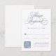 This blue and white wedding RSVP card featuring elegant and romantic swirly calligraphy lettering with a QR code. For more advanced customisation of this design, please click the BLUE DESIGN TOOL BUTTON above!