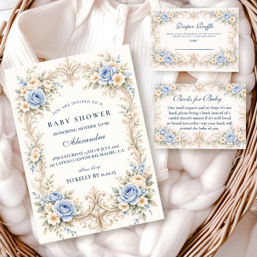 Dusty Blue Rose Baroque Baby ShowerDesigned by Andreea Eremia