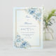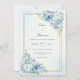 Surround your special news with the timeless elegance of this hand-painted botanical layout. This design features lush clusters of watercolor roses in sophisticated shades of dusty blue, steel blue, and creamy white, accented by delicate shimmering gold foliage. A thin, metallic gold double-line frame provides a sharp, modern boundary for your text, set against a soft and airy light blue watercolor wash background. The ethereal vibe and high-definition floral details create a romantic, fine-art aesthetic that is both classic and contemporary. This botanical scene is an impeccable choice for a dusty blue wedding, a formal garden ceremony, or a winter wonderland celebration. It pairs beautifully with themes like modern romance, classic elegance, or fine-art botanical, and coordinates perfectly with gold metallic accents, velvet textures, and white floral decor.