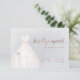 Elegant RSVP cards feature watercolor white wedding dress with sparkle faux rose gold glitter details on dusty blue background.