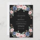 A romantic wreath of soft blush pink and deep dusty blue blossoms adorns this design. Delicate foliage and subtle brown accents enhance the artistic, painterly feel, creating an elegant mood. The composition evokes a timeless charm.