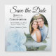 These magnetic save the date cards area wonderful way to let your friends and family know about your upcoming wedding. They feature a beautiful design that is both romantic and elegant with a single long stemmed light dusty blue or powder blue coloured rose reflecting in a pool of water with waves & ripples and your photo in an oval shaped frame on a classic white background. The caption reads Save the Date with space for your names, the date, and location.