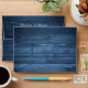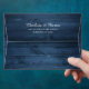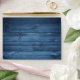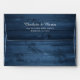 Personalised dusty blue rustic wood and sunflowers wedding envelopes with a return address. Our dusty blue envelopes feature sunflower flowers and string lights on a barn wood background. Matching items available.