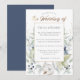 Fresh winter flowers in shades of dusty blue, sage green, white, cream, and greys wedding invitations. The text boxes are easy to personalise using a mix of modern and calligraphy fonts. The back of the card is dark dusty blue.