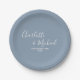 Dusty Blue Script Minimalist Wedding Paper Plate