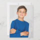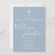 Featuring a script signature name on a dusty blue background and special photo on the reverse. Personalise with your special first holy communion information in chic lettering on this stylish design. Designed by Thisisnotme©