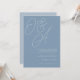 A beautiful typography based monogram wedding invitation featuring your initials in oversized script lettering at the top, in tone on tone shades for a watermark effect. Personalise with your wedding details in classic serif lettering aligned at the lower right. Our Dusty Blue colorway is an elegant mix of ethereal blues, with white and blue-grey lettering on a dusty medium blue background.