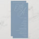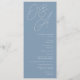 A beautiful typography based wedding program card featuring your initials in oversized script lettering at the top, in tone on tone shades for a watermark effect. Personalise with your ceremony details beneath, and customise the back with your wedding party. Our Dusty Blue colorway is an elegant mix of ethereal blues, with white and blue-grey lettering on a dusty medium blue background.