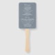 Elegant, modern, sophisticated dusty blue wedding program hand fans with silver grey floral lace and trendy script.