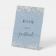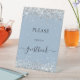 A dusty blue background decorated with faux silver sparkles. Text: Please sign our guestbook.