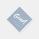 Modern brush script design in dusty blue and white, simple and unique. great personalised napkins for graduation party.