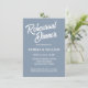 Simple style wedding rehearsal dinner invitations that feature white, stylised lettering on a trendy, dusty blue colour background. Edit your invitations by replacing names, date/time, location, and contact info with your own. Select your invitation size and paper style.