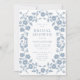 Dusty Blue Simple White Folk Floral Bridal Shower Invitation