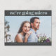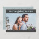 A minimal and modern announcement postcard to let your original guest list know that circumstances have required you to downsize your wedding. "we're going micro" is written across the top in dusty blue typography against a slate grey background. You can easily customise it with your favourite engagement photo by clicking on "Personalise". On the back, you can personalise your message in more detail and add any live streaming and wedding website information.
