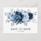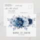 Dusty Blue Slate Navy Floral Wedding Save the Date Postcard