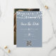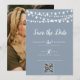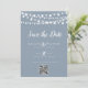 Dusty Blue String Lights Modern Script Save the Date Template for you to customise. Add your beautiful, photo to the back of the Invitation/Announcement.
