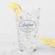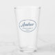 Beer glass for the wedding groomsman that features his name printed in a trendy, dusty blue, stylised script inside a dusty blue colour oval border along with wedding year date. A great party supply idea for a bachelor party! Personalise your beer glass by editing and replacing name and date with your own. Available in many, popular wedding colour schemes.