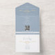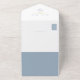 A modern and romantic dusty blue all-in-one wedding invitation featuring a minimalist gold rope heart and a detachable wedding mini-timeline your guests can take with them to the celebration. Designed for couples who want simplicity, elegance, and practical convenience in one stylish piece.