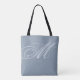 A stylish and elegant dusty blue tote bag with your name and initials monogrammed in a script font style... to match your bluish fashion clothes