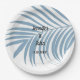 Dusty Blue Tropical Palm Tree Leaf Cute Wedding Paper Plate
