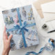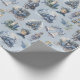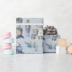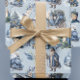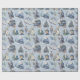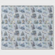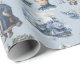 Dusty Blue Antique Victorian Ephemera Christmas Wrapping Paper — This holiday gift wrapping paper features a delicate seamless pattern design of very pale pastel blue, ivory, cream, gold, and white fussy antique Victorian Era ephemera Christmas themed illustrations from yesteryear, on a dusty light sky blue background. Graphic depictions include Santa Claus, a train, a nutcracker, silver bells, Christmas presents, a carriage, pillar candles, a decorated xmas tree, a child, a bird, seasonal foliage, festive garlands, and more.