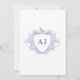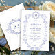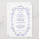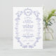 Elegant classic traditional French Victorian dusty blue toile de jouy chinoiserie style crest monogrammed charming wedding invitation.