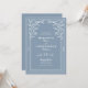 Dusty Blue Vintage Wedding Invitation. Elegant calligraphy script, art nouveau ornate frame wedding invitation in classic, timeless white and dusty blue.