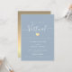 Simple, modern, elegant dusty blue virtual wedding invitation with gold foil rope heart. Perfect unique contemporary intimate wedding ceremony invite.