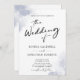 Dusty Blue Watercolor Calligraphy QR Code Wedding Invitation