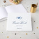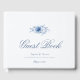 The minimalist layout with soft dusty blue watercolor flowers creates a sophisticated and elegant presentation while allowing guests to leave heartfelt messages and memories from your special day.