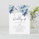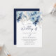 Dusty Blue Watercolor Florals with Navy Wedding Invitation