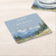 Dusty Blue Watercolor Mountain Wildflower Wedding Square Paper Coaster