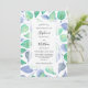 Dusty Blue Watercolor Painted Foliage Wedding Invitation