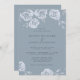 This elegant wedding invitation showcases hand-painted watercolor roses in soft white and grey tones, beautifully set against a rich dusty blue background. Perfect for couples seeking a timeless and romantic design, this invitation pairs delicate florals with a bold colour palette for a sophisticated look. Ideal for fall, winter, or classic weddings. Fully customisable with your details to create the perfect wedding stationery.